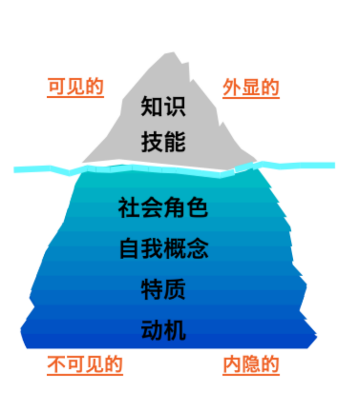 ​ 胜任力是个体特征的组合。这种组合不仅包括知识、技能等外显部分,还包括不易察觉的价值观、个性特质、动机等。