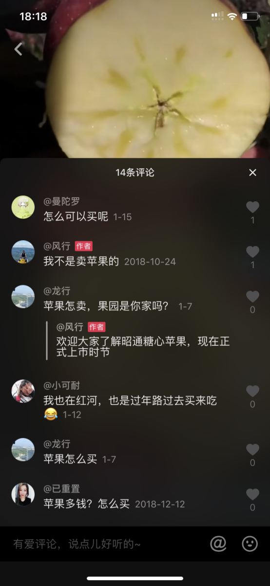 图1-5新疆阿克苏苹果视频评论截图