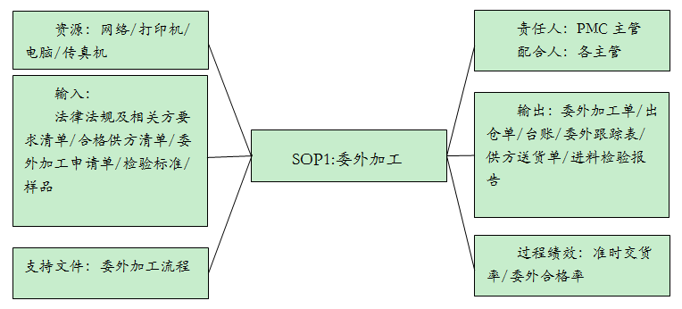 (4)外包可指过程外包或工艺外包,过程外包主要有产品测试、仪器校准、运输、设计等。工艺外包主要有表面处理、慢走丝、贴片等。公司要识别外包过程,并策划在体系文件中。如果外包活动少,可和采购过程归为同一个过程,不必单独形成一个过程。
