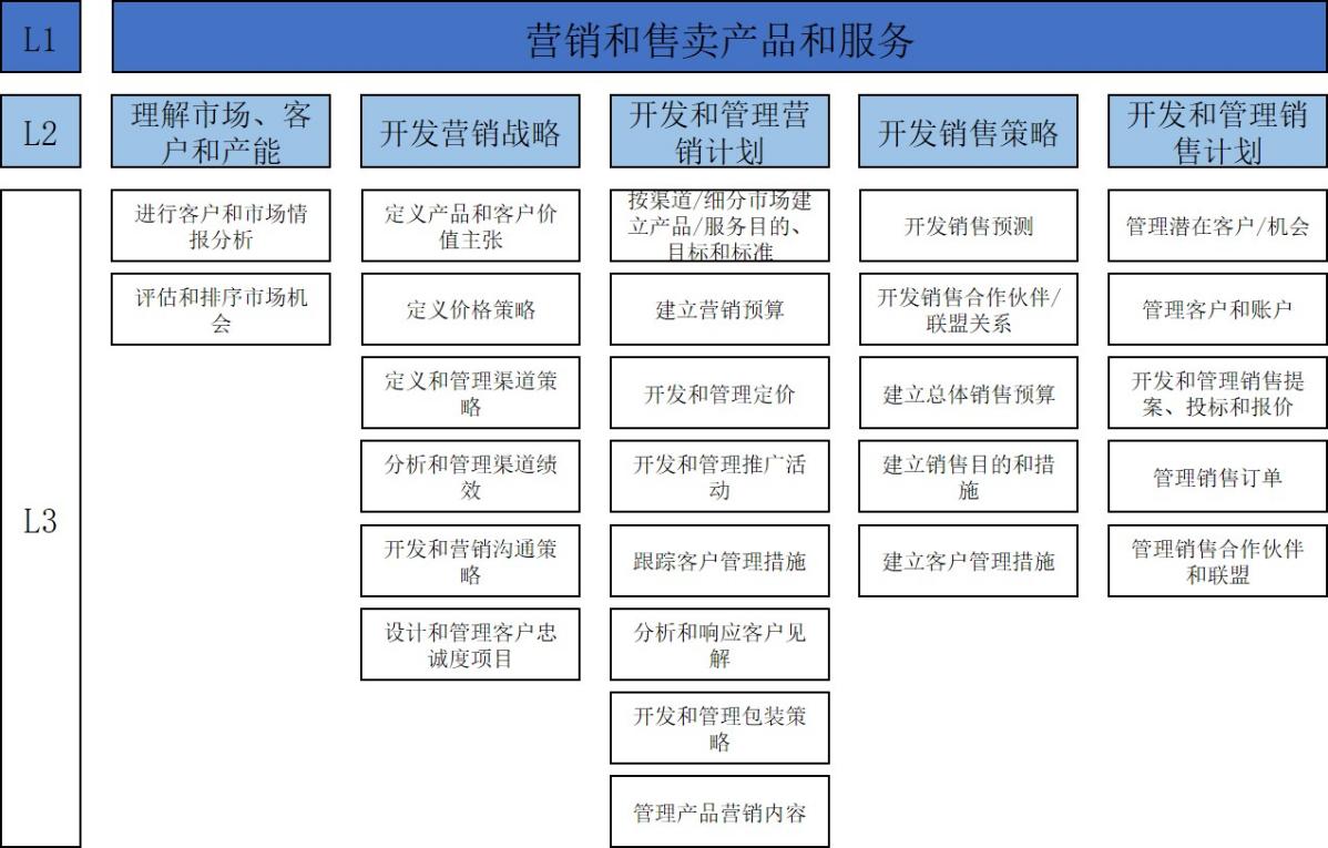 图4.12 营销和售卖产品和服务流程架构(L1-L3)