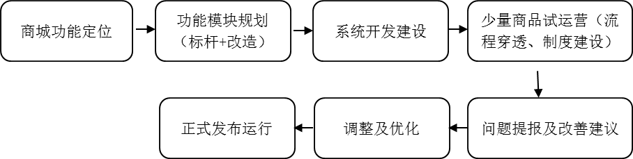 (6)调整及优化:即根据内测阶段各问题的反馈及改善建议,对线上、线下所有流程、制度的进行调整及优化。其实,通过寻找优质标杆项目,进行定点、定向、定时赶超,是商城调整及优化最快最便捷的方式。在调整及优化完成后,可继续邀约全体员工(或部分会员志愿者)提报问题或改善建议。