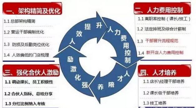 人力费用控制:离职率控制、新开店人力费用控制等。