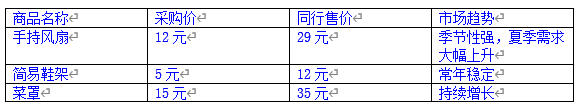 比如,通过前面的调研,我们最终明确了以下三款适合微型店铺起步的产品:
