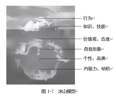 首先,胜任力的冰山模型有明确的分层,如图 1-7 所示。内驱力、动机位于冰山下,知识、技能在冰山上,它们在胜任力的构造中并非泾渭分明,因为胜任力这个概念本身就是虚构的。就像人的概念一样,除了身高、体重等用仪器可以测量的,其他都是虚构的,这也是人复杂的原因之一。