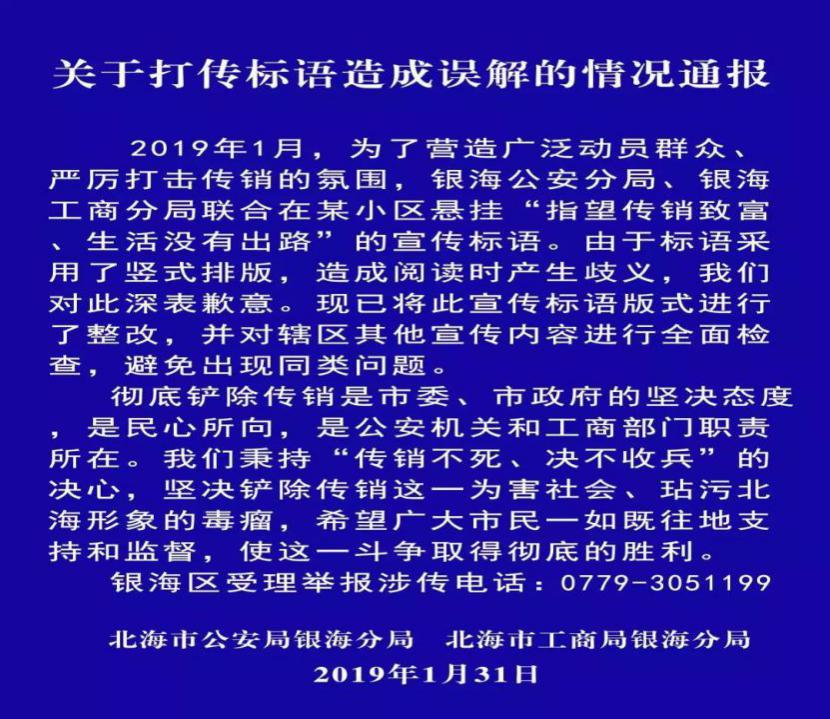北海市公安局银海分局和北海市工商局银海分局联合发布的通报如图3-8所示。