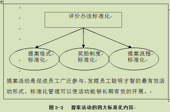 如前所述,改善提案活动是一种通过标准化和制度化的评价、奖励措施来推动的改善活动。因此,开展这项活动最重要的工作就是建立一套提案等级评价标准及与之相对应的奖励制度。