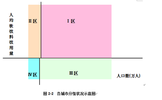 我们以饮料为例,阐明企业应如何根据城市的人口数与饮料的年人均饮用瓶数,进行城市分级。分析模型如下: