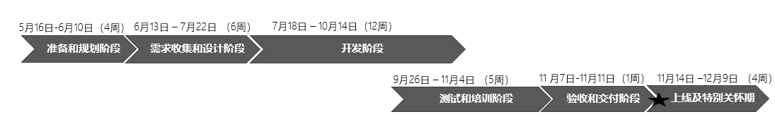 ​ 上线及特别关怀期(hyper-care):产品服务上线,项目团队会在上线后一段时间内对产品服务的使用和运行密切关注,随时就绪解决问题,需要登记好问题日志等。