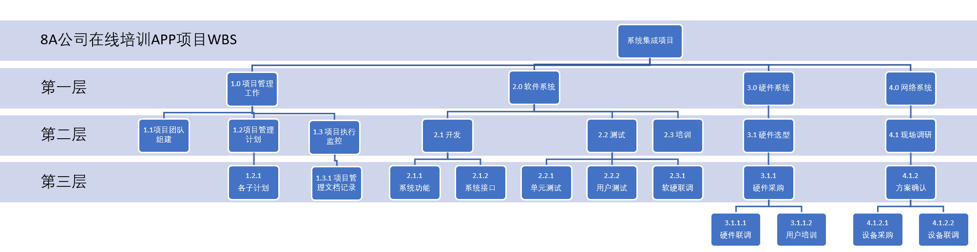 我们最常用的定义项目活动的方式是通过分解项目的WBS来获得我们的项目活动。我们通过前期识别项目范围,对项目范围进行分解,得到项目的可交付成果,现在需要对项目范围和项目可交付成果逐步划分为更小、更便于管理的项目活动。我们在规划的过程中可以是滚动式或者迭代式来规划,即详细规划近期要完成的工作,对于远期的工作,可以先保持在较高层级上规划。这也是项目的一个特点“渐进明细”。因此,在项目生命周期的不同阶段,工作的详细程度会有所不同。在早期的战略规划阶段,信息尚不够明确,工作包只能分解到已知的详细水平;随着了解到更多的信息,近期即将实施的工作包就可以分解到具体的活动。