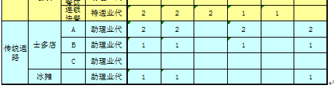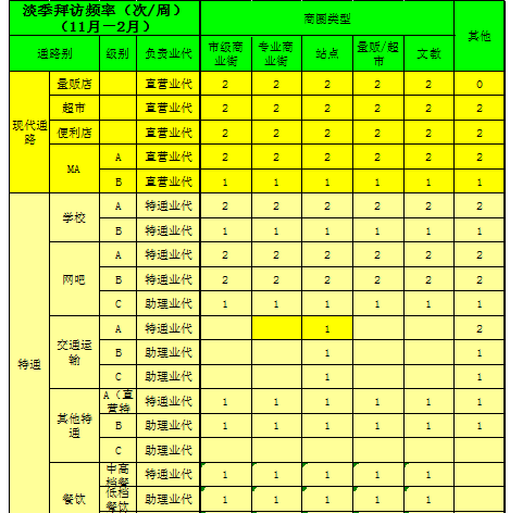 ③ 各通路拜访频率见下表。