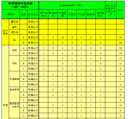 a.旺季(3月~10月)各级客户拜访作业时间如表5-5所示。