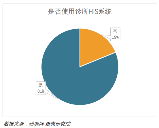如图3-2所示,动脉网调研的诊所绝大部分都已经使用诊所云HIS(医院信息系统)系统,常见的如丁香云诊所、若水医生等,还有好几家诊所自己研发诊所信息化软件。没有使用诊所 HIS 系统的多以传统诊所、中医诊所居多。