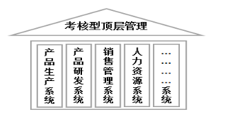 图1-2是经过抽象化处理的传统经营管理架构,纵向模块是职能部门,正上方的三角形是以绩效考核为主的顶层管理。这样的管理架构看似完善,可谓是五脏俱全,但企业经营者仍是抱怨不断。针对企业的困惑,各路专家学者各显神通,提出了形形色色的理论和方法,试图帮助企业解决问题,但是效果不佳,让企业经营者更加困惑不已。