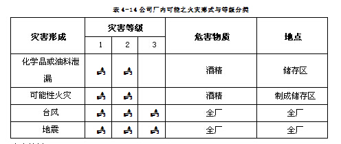 4-14公司厂内可能之火灾形式与等级分类