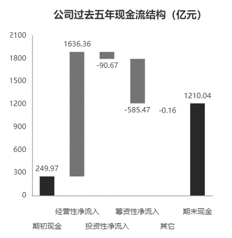 图8-9 贵州茅台2015—2019年累计现金流结构