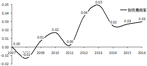 它2014—2016年的财务费用率都在0.03左右,总体来讲不高,所以这方面看不出问题。