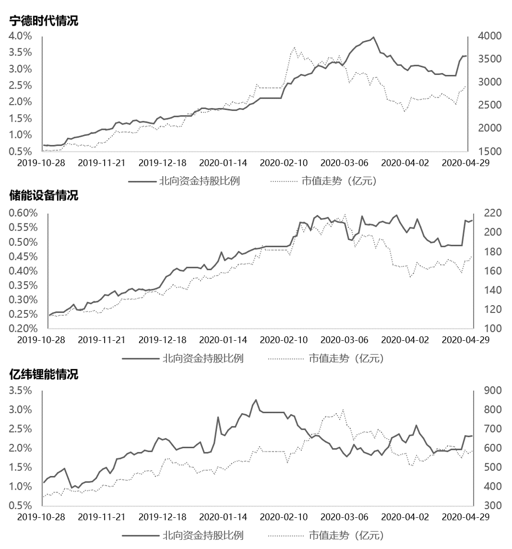 图9-4 宁德时代、亿纬锂能、储能设备行业的北向资金情况