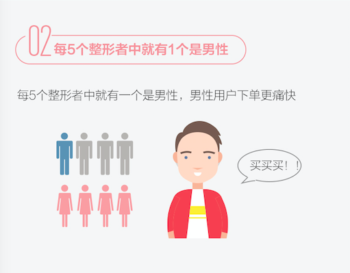 《2017年中国医美行业白皮书》显示,男性用户占平台总用户的23%,比2015年的17%大幅增加,越来越多的中国男性通过整形手术美化外表、增加男性魅力。其实在美国、日本和一些欧洲发达国家中,男性用户更是占到了整个医美市场的一半。