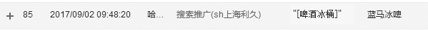 这是一家厚板吸塑厂的百度统计结果,最后两列分别为关键词和搜索词,为了方便大家理解,我将原关键词替换成了加匹配标识的,按理“[啤酒冰桶]”采用的是精确短语匹配,匹配出的搜索词只能在这四个字的前面和后面加文字,如“啤酒冰桶厂家”或“上海啤酒冰桶”等,不可能匹配出“蓝马冰啤”这样的搜索词。类似这样错误的匹配,如图7-22所示。