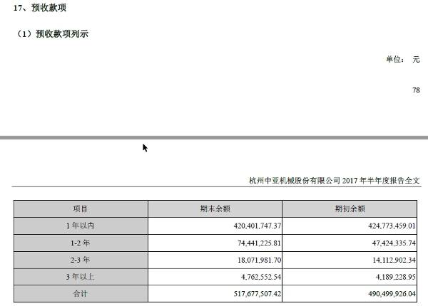 表4-13 中亚股份2017年半年报预收款项