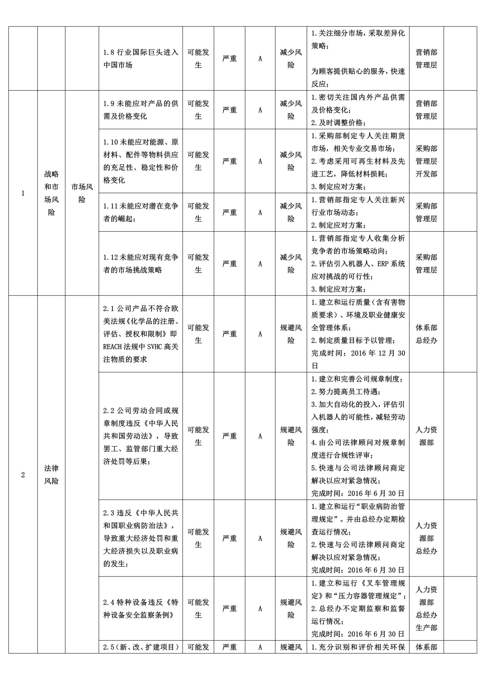 表5-8某公司经营风险分析评估和应对措施表