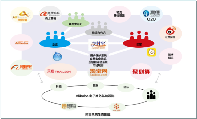 阿里巴巴生态系统最大的价值在于它并不是单一的价值链条,而是多条复杂的价值链条。所以在阿里巴巴生态里面,最关键的是它围绕着用户构建不同的价值链条,如图5-1所示。