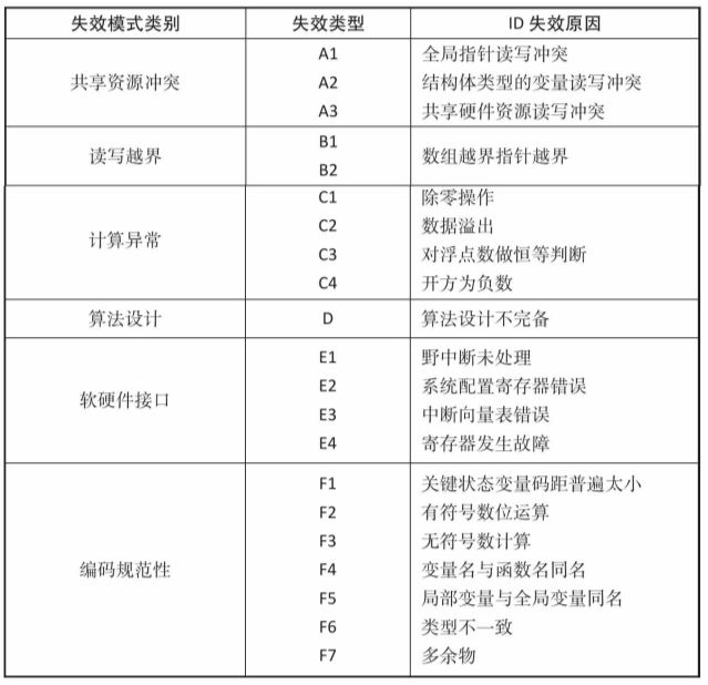 表4-3 软件失效模式分类表