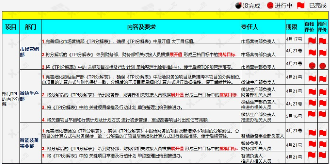 每期推进办针对日常推进中存在问题与顾问师进行沟通,汇报作业完成情况,针对一些专项问题,组织生产副总、部门经理、车间主任及相关部门人员进行沟通交流,针对性制定改善措施,并及时现场辅导,确保落地效果。