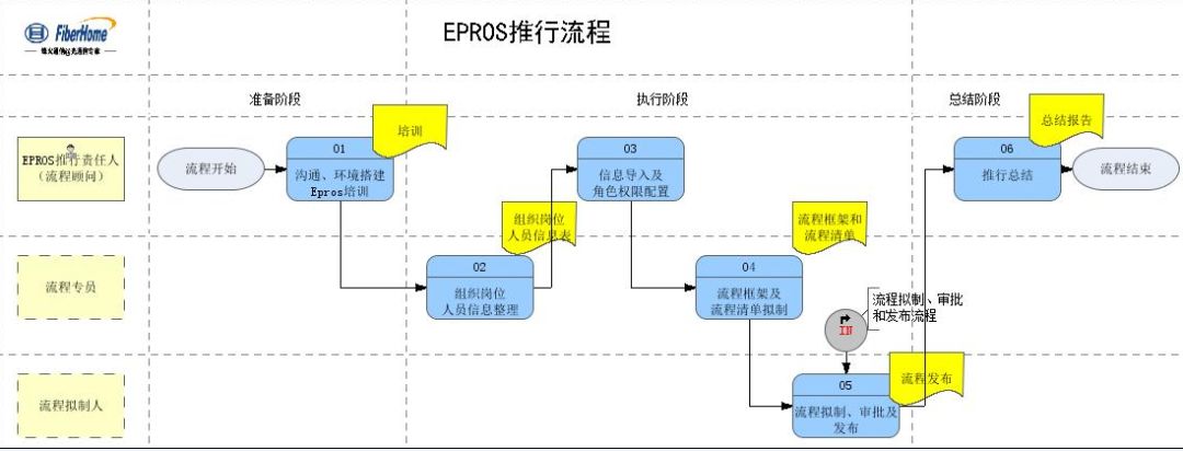 烽火通信将基于自身的战略与商业模式,建立端到端的流程体系,使用EPROS平台,通过工具统一、规范统一、方法统一、规则统一,实现流程可视化、标准化、集成化,将烽火通信积累的优秀流程资产转化为生产力,为流程建设奠定基础。