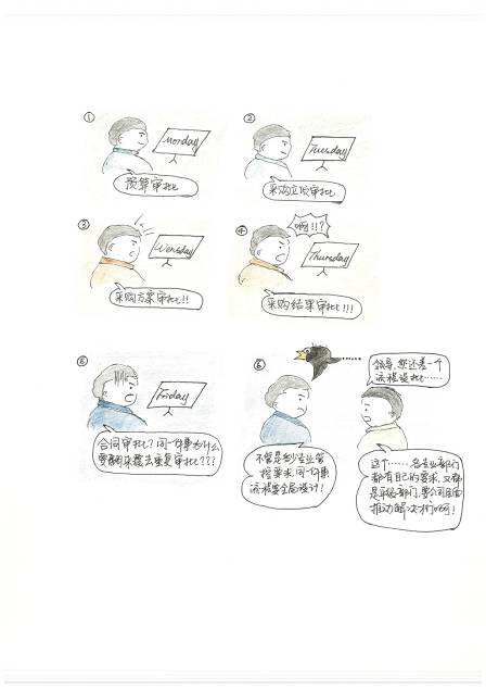 漫画中以采购管理流程为典型案例进行说明,如果没有预算就要先走财务部门的预算申请或变更流程,再走采购部门的立项审批流程,需要制定方案的还要走采购部门的采购方案制定流程,组织招标后还要通过采购部门的采购结果审批流程确认供应商,与供应商再通过法务部门的合同审批流程签订供应合同,支付款的时候再走财务部门的供应商支付流程。同样一件事情,翻来覆去地审批,就算是企业高层也抱怨:“这件事情我不是已经同意了吗?怎么又让我审批?”