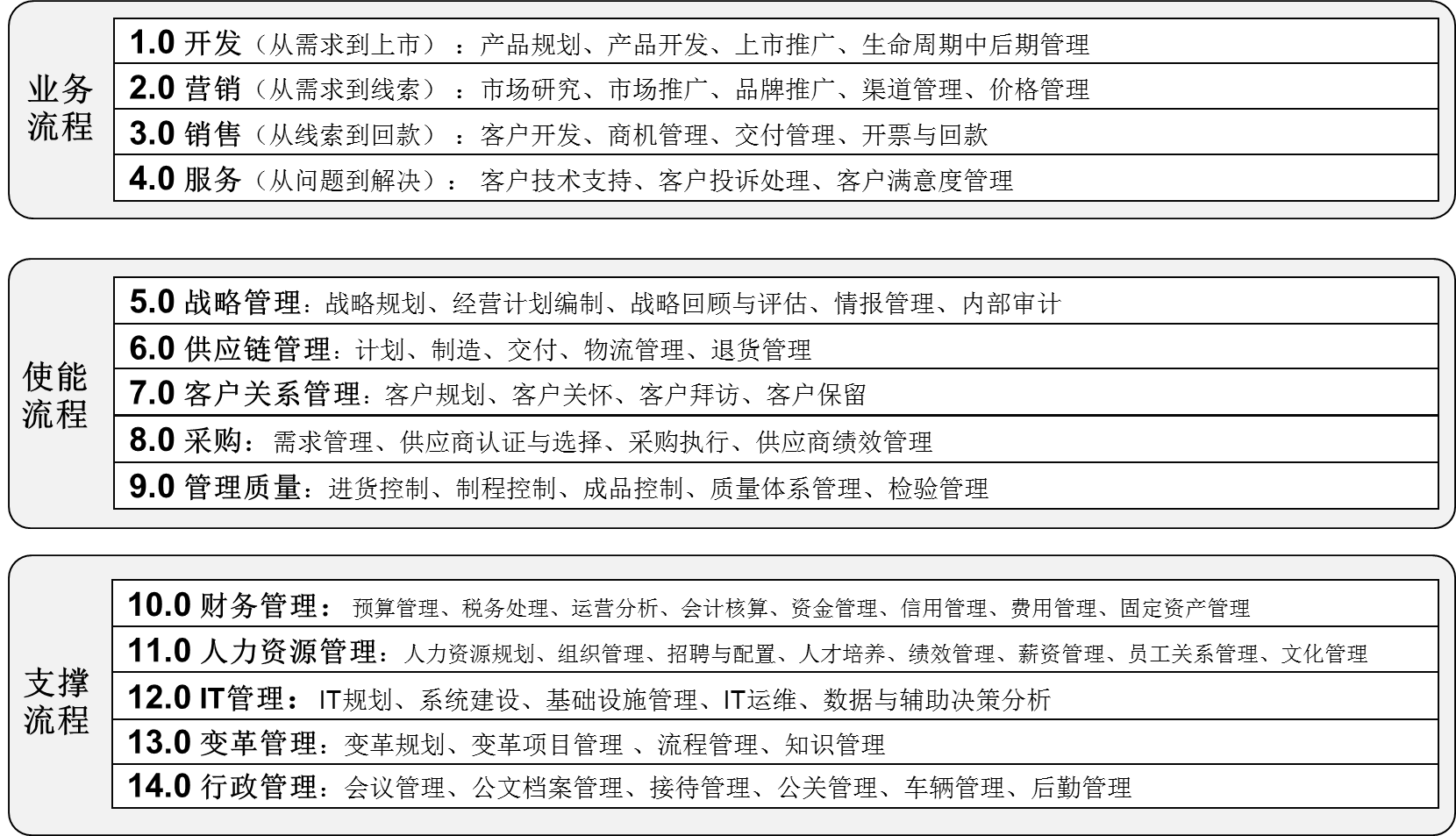 公司流程架构规划逻辑通常有POS与OES两类,针对这两类流程规划模式,对流程架构总图介绍如下: