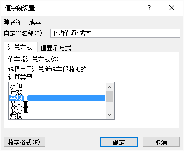 图7-7 Excel数据透视表的值字段设置