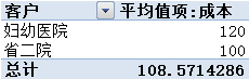 总计的成本平均数108.57元,等于总计的成本760元除以总计包含的明细维度数7。