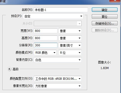(1)新建一个800×800像素或者是750×750像素的图层(阿里巴巴一般是750×750像素就可以,如果是淘宝,就是800×800像素)。