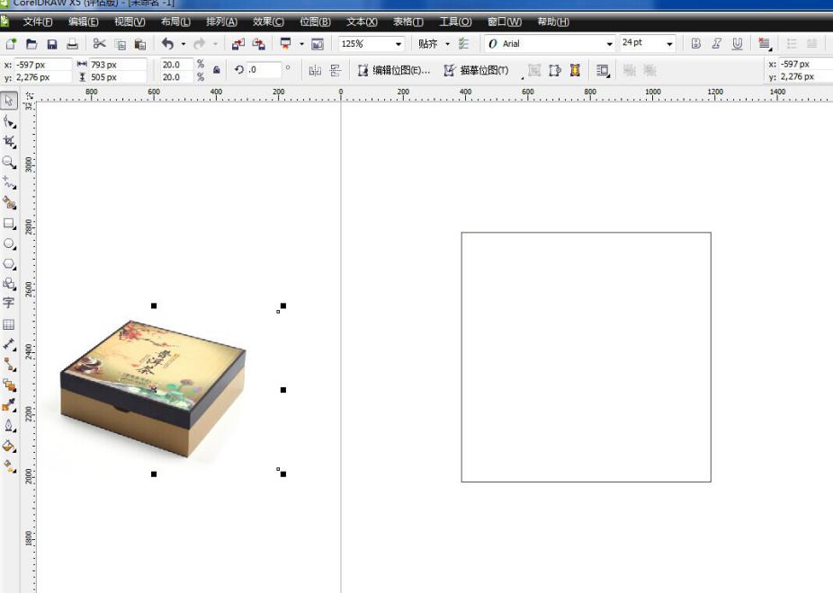 一般图片会跑到线框里面,点击放置在容器中时,会出现向右的箭头,只要将箭头点到要放的线框里面就可以了,如图5-29所示。