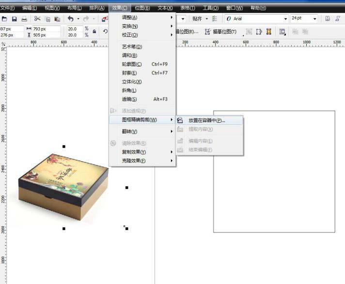 (3)选中要放到线框里面的产品点效果——选择图框精准线——点击放置在容器内,如图5-28所示。