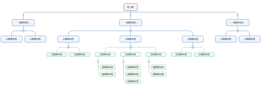 假设你是广东省级销售经理,那么往上数三级阿米巴组织垂直关系就是:广东省巴→华南区巴→营销中心巴,再往上就是总公司了,不需要。