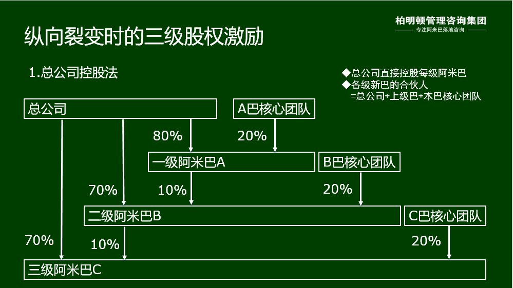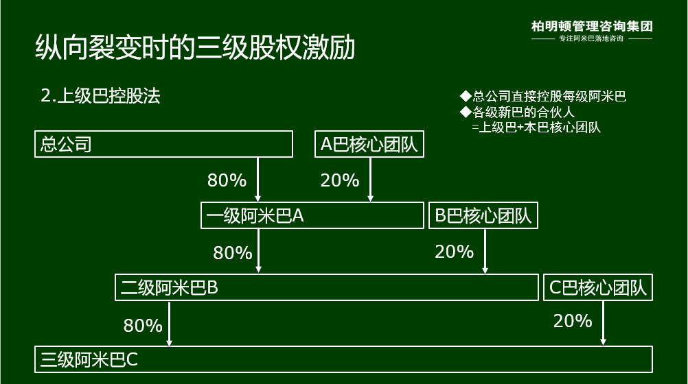 由于阿米巴不一定都是工商登记注册的法人实体,若要实施注册股东的股权激励就只能采取自上而下的做法,具体操作方法与虚拟股份相反。