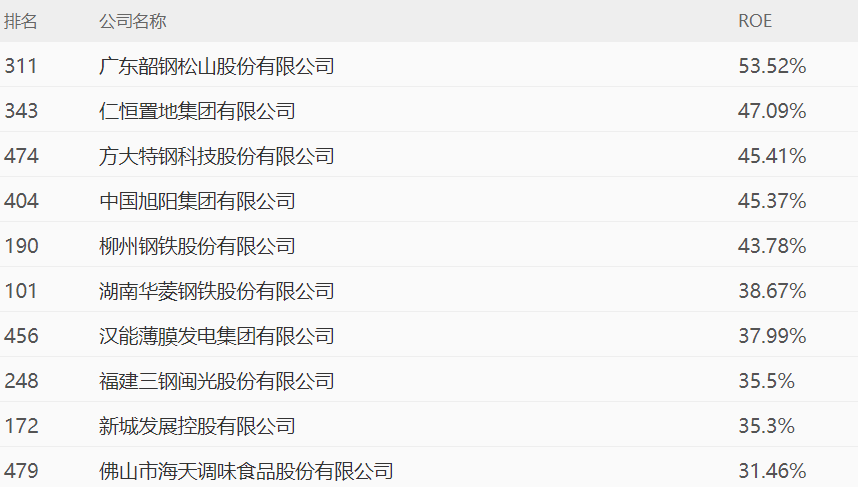 表5-22 2019年中国500强净资产收益率(ROE)前十名