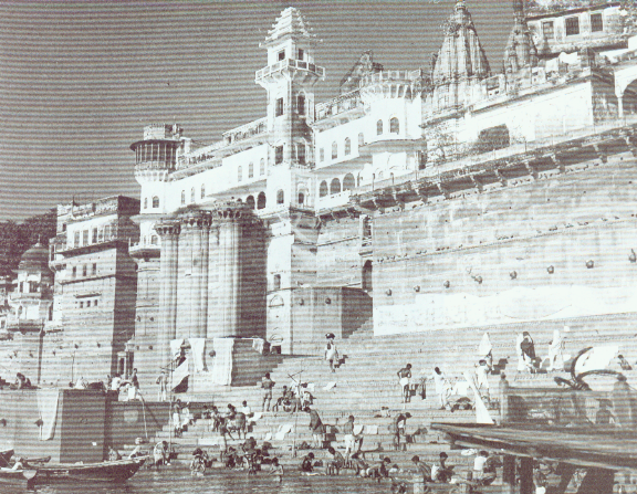 令人惊奇的是,尽管被穆斯林征服了500年,英国又统治了200年,但瓦拉纳西仍然具有强烈的印度教色彩。这里的庙宇多得惊人,其中绝大多数是印度教寺庙,湿婆神庙尤多。大大小小的庙宇星罗棋布,多达1500多座,可谓是印度庙宇之集锦。有的庙宇高大雄伟,金碧辉煌;有的则小巧玲珑,精美无比;有的是威严森森几百年,丝毫不变;有的则已成废墟,破败不堪。外来香客来到这里,单就去一些主要的庙宇朝拜一番,起码也得花一个星期。有的香客为表虔诚,往往还要步行绕城一周,这样至少也要走五天五夜才能完成。虔诚的印度教徒认为,人生有四乐:一为居住在瓦拉纳西;二是与圣人结交;三是能饮上恒河水;四是要敬奉湿婆神。