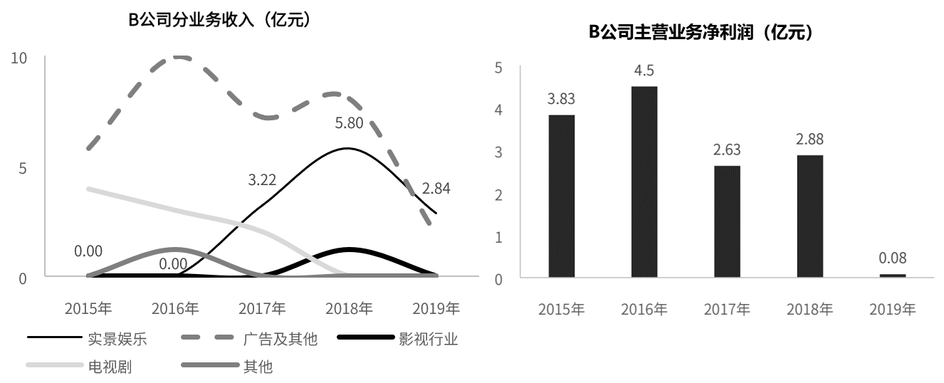 图8-40 2015-2019年B公司各业务收入和主营业务净利润情况