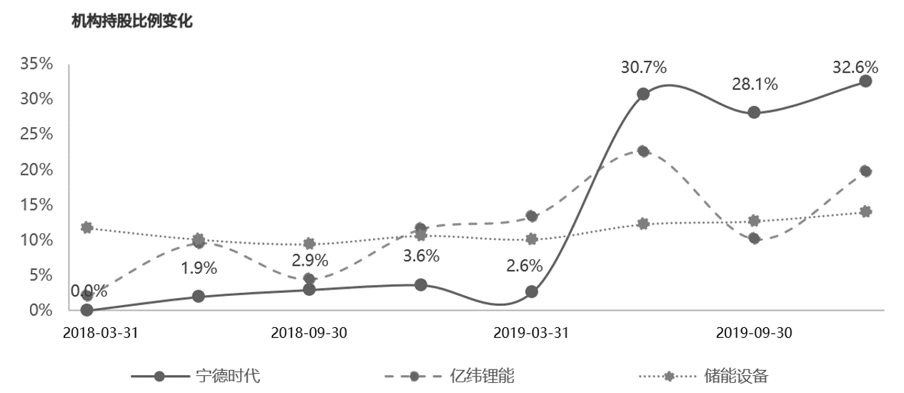 图9-3 宁德时代、亿纬锂能、储能设备行业的机构持股比例变化