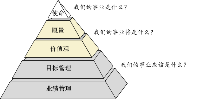 价值观:使命和愿景约束下的价值取向,由信念和认知结构等组成;