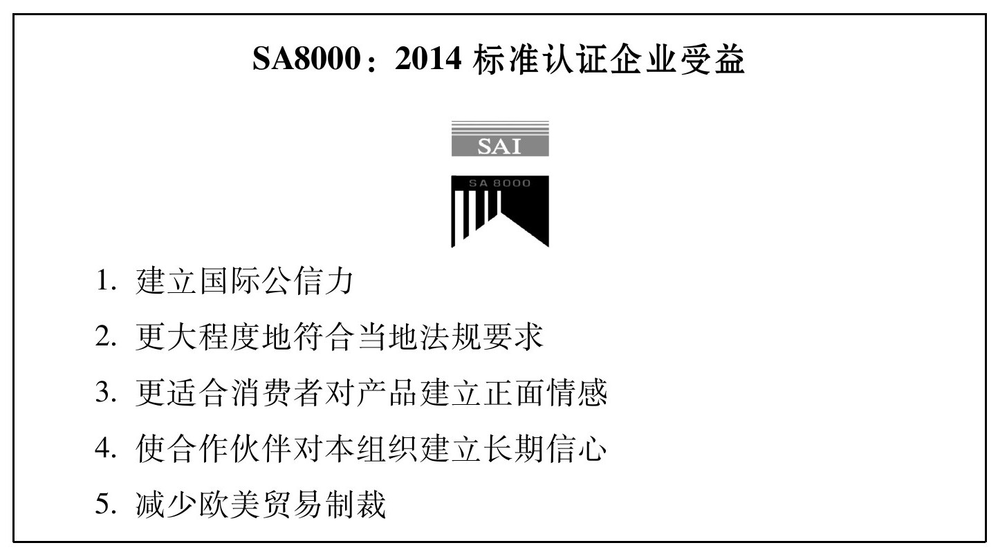 3.自2016年1月1日起,唯一可接纳的社会责任认证标准将统一为SA8000:2014版。