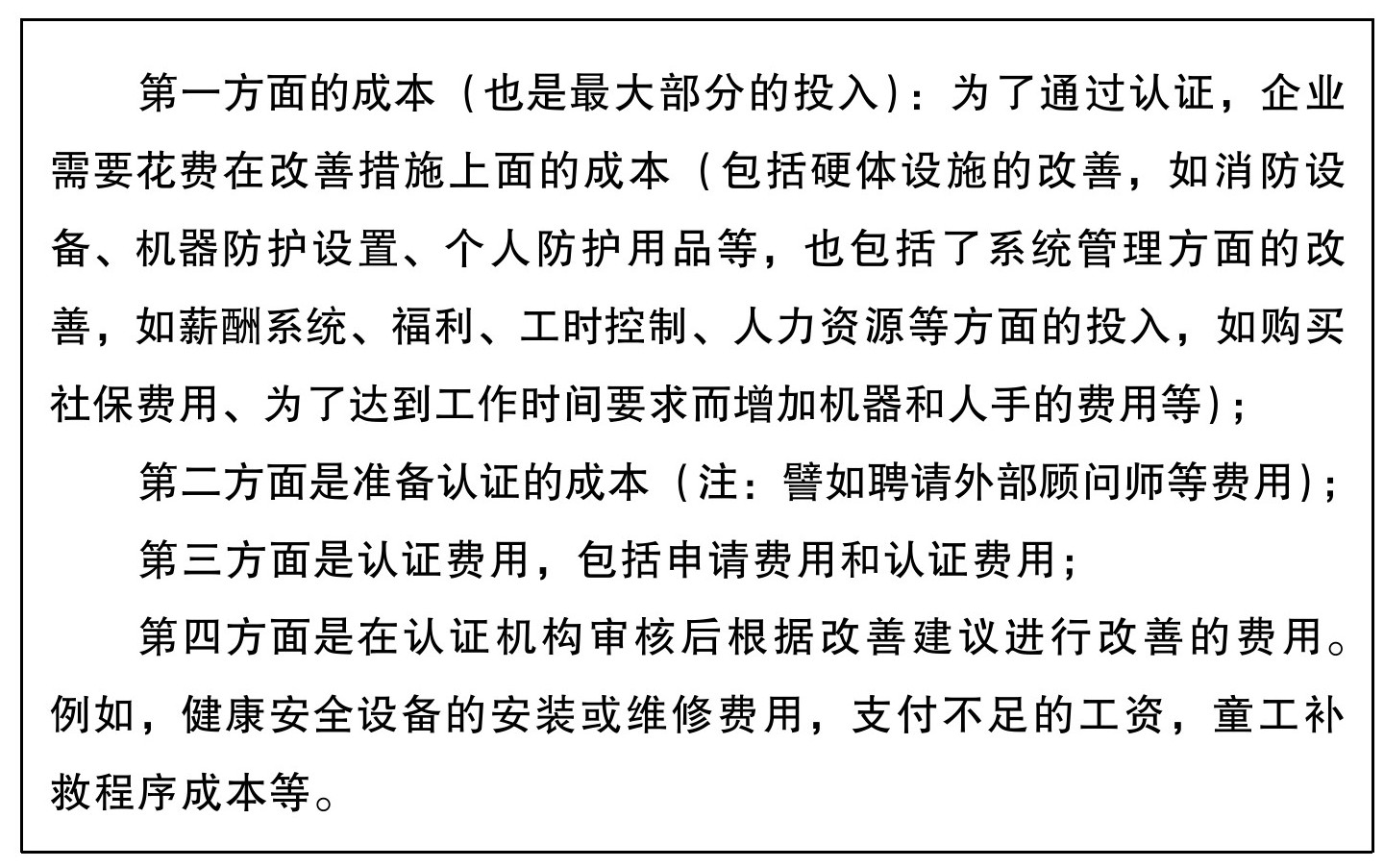 图3-20 推行SA8000:2014的成本