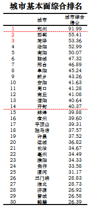 中原城市群城市基本面综合排名TOP3的城市为:郑州、邯郸、菏泽。处在城市发展较好区、适中区、较差区的城市个数比为1:14:15。