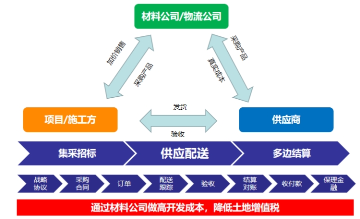 二是实现资金的统一管理,由材料公司或物流公司统一与供应商进行结算,保障了资金的高效利用;