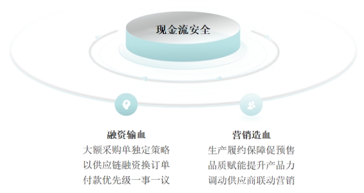 动态调节奏,让钱用在刀刃上。当销售端出现乏力时,在生产端就要放慢节奏;当销售端火爆热销时,在生产端就要加快节奏。自身资金的松紧度决定了供应链资源投入的松紧度,尤其资金量较大的项目,长时间占用资金而无法创造现金流往往会拖累企业,造成较大的经营风险,因此节奏的快慢与现金流量快慢细细相关。