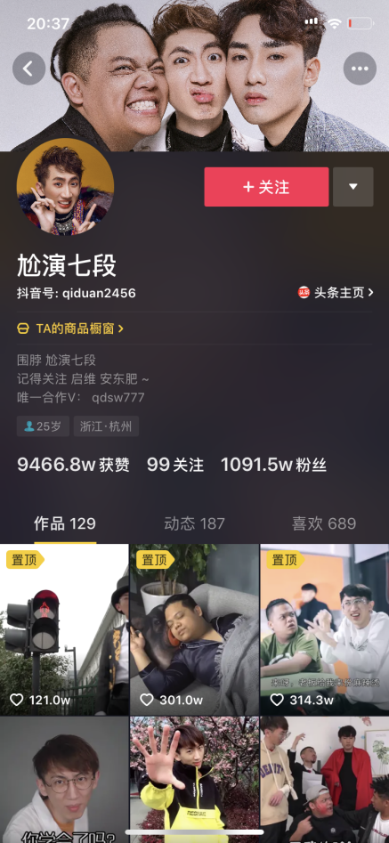 更有甚者,将非常多的网红音乐、舞蹈和段子,集合成一个视频。看完这个视频,相当于看完了最近最流行的元素,这样的集合视频也很受欢迎。比如“尬演七段”的内容形式,如图5-16所示。