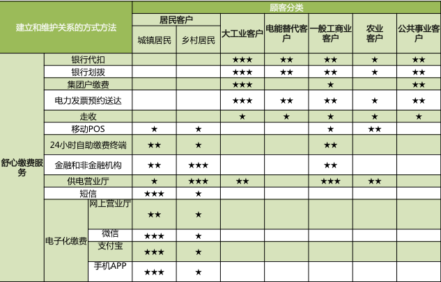 舒心缴费服务中主要以银行代扣、移动POS、24小时自助缴费终端、供电营业厅、电子化缴费等方式实现全方位、多角度的缴费服务。